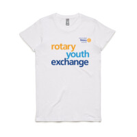 Women's White AS COLOUR Maple Tee with large Rotary Youth Exchange Logo 2
